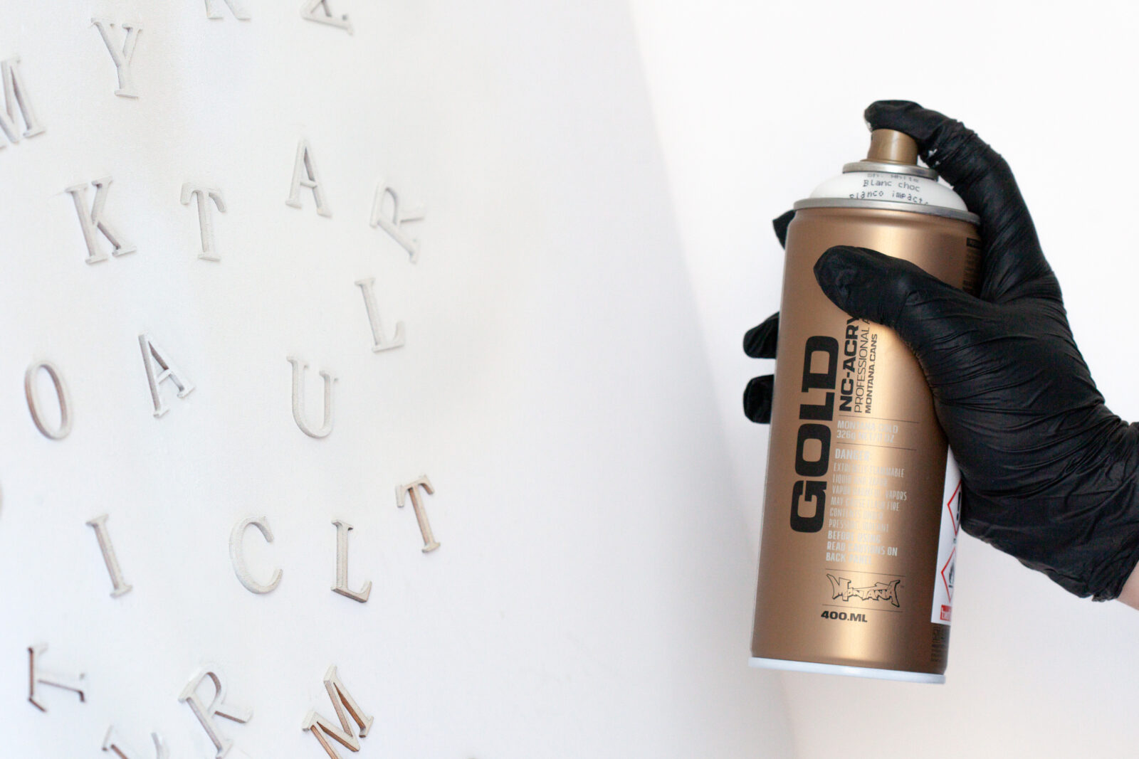 Select a few letters and spray them with the Brown GRANIT Effect. The granulate in the paint creates a subtle stone-like texture, giving the letters a natural, earthy character.