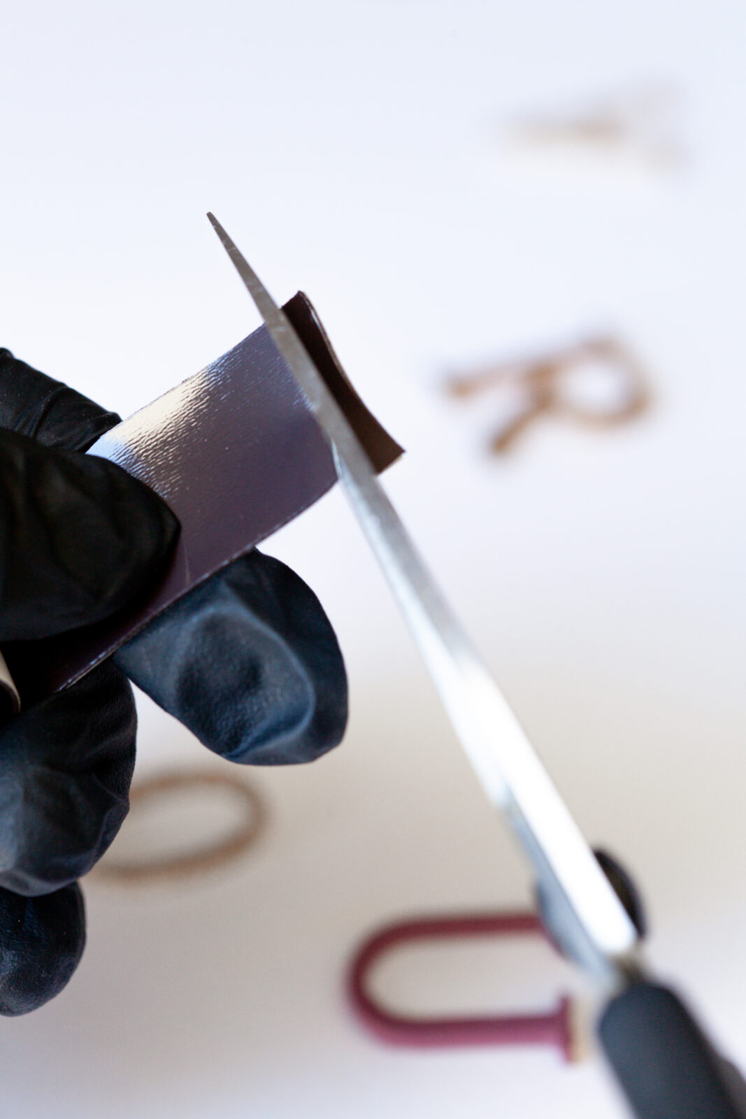Cut strips of sticky magnetic band to fit the back of each letter. Press firmly to secure. For larger letters, use multiple strips to ensure strong hold.