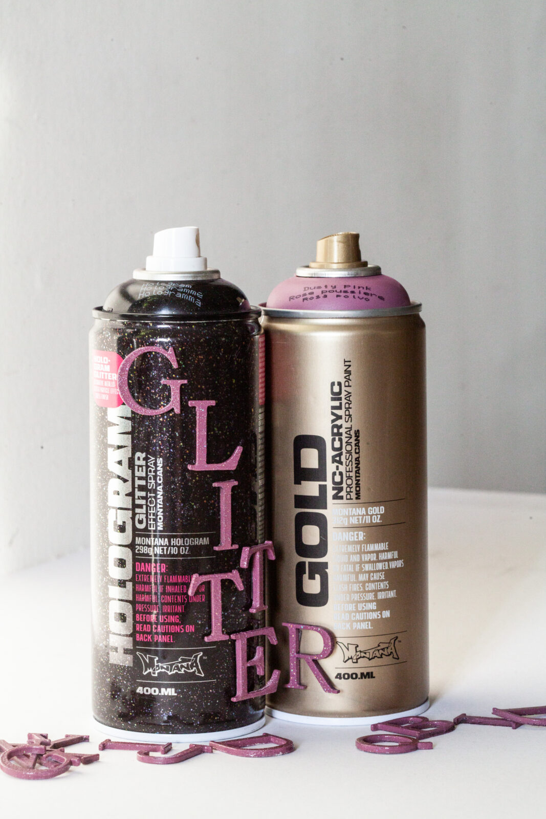 Choose a playful or harmonious mix of Light Yellow and Purple from the GOLD line. Spray the letters in light, even coats, keeping the can moving to avoid drips.